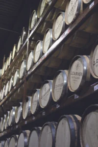 The barrel room at J. Carver Distillery in Waconia. (Adam Quandt/The Patriot)